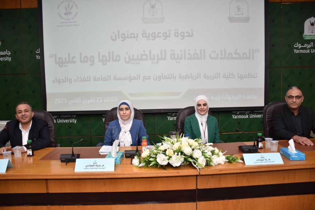 رعى عميد كلية التربية الرياضية في جامعة اليرموك الدكتور محمد خلف ذيابات، الندوة التوعوية التي نظمتها الكلية بعنوان “المكملات الغذائية للرياضيين.. مالها وما عليها”، والتي جاءت في إطار حملة الاستخدام الآمن لأغذية الرياضيين التي أطلقتها المؤسسة العامة للغذاء والدواء تحت شعار ” استعملها صح” بهدف نشر ثقافة الاستخدام الآمن للمكملات الغذائية المخصصة للرياضيين.