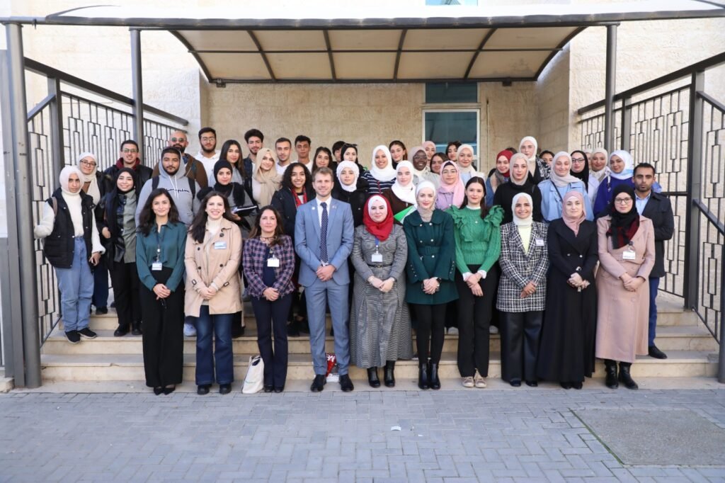 استضافت كلية الآداب والعلوم التربوية في جامعة الشرق الأوسط مدير المجلس الثقافي البريطاني السيد ألكس لامبيرت لمحاورة طلبة قسم اللغة الإنجليزية والترجمة التطبيقية حول التعريف بالثقافة العالمية ومدى ارتباطها باللغات.