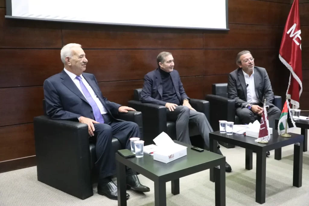 استضافت جامعة الشرق الأوسط في أولى حواراتها: “صناعة الوعي السياسي لدى الشباب الأردني”، رئيس الوزراء الأسبق، رئيس اللجنة الملكية لتحديث المنظومة السياسية، دولة الأستاذ سمير الرفاعي، بحضور رئيس مجلس أمناء الجامعة العين الدكتور يعقوب ناصر الدين، ورئيسة الجامعة الأستاذة الدكتورة سلام المحادين، وعدد من الشخصيات السياسية، والبرلمانية، والمجتمعية، وعمداء الكليات، وأعضاء الهيئة التدريسية، وجمعٌ من الطلبة.