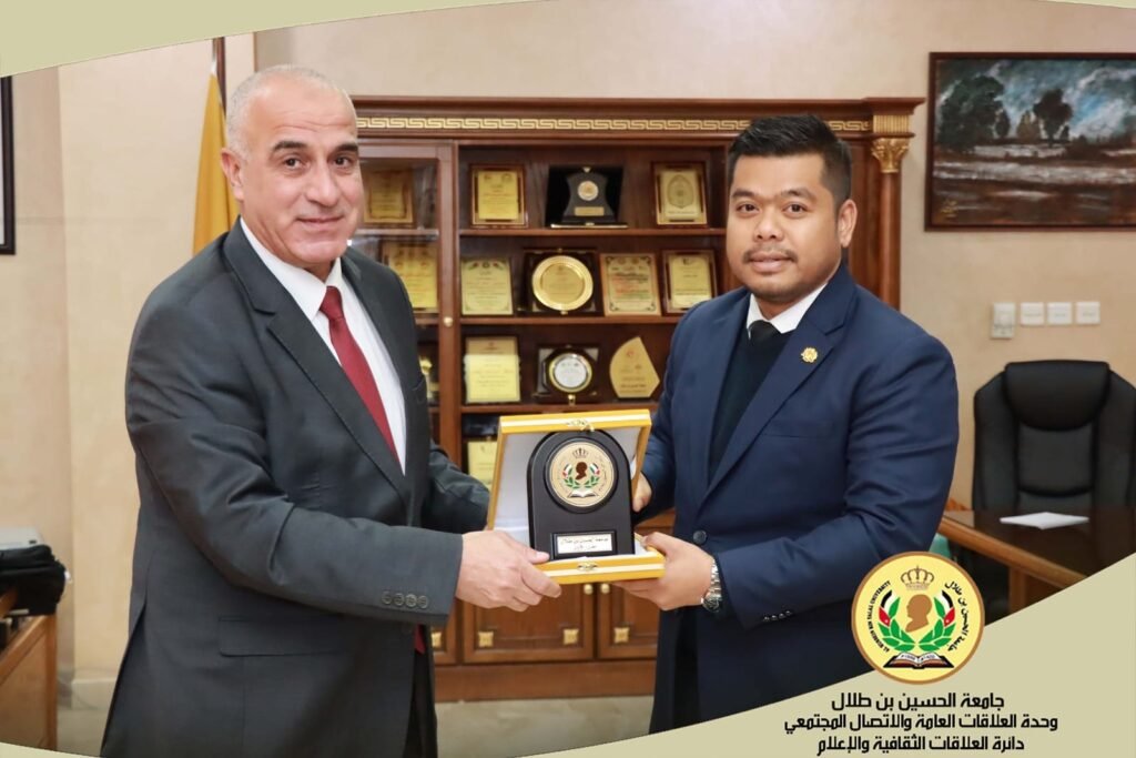 بتنظيم من وزارة التعليم العالي والبحث العلمي وهيئة تنشيط السياحة، استقبل رئيس جامعة الحسين بن طلال الأستاذ الدكتور عاطف الخرابشة في مكتبه يوم أمس المستشار الثقافي في السفارة الماليزية الدكتور رضوان عبد الرشيد، على رأس وفد ضم كل من مستشار وزير التعليم العالي والبحث العلمي ومدير وحدة تنسيق القبول الموحدالسيد مهند الخطيب، ومدير وحدة السياحة التعليمية في هيئة تنشيط السياحة السيد عبدالله كريشان، وذلك لبحث سبل التعاون الثقافي والأكاديمي وآفاق التعاون بين الجانبين.