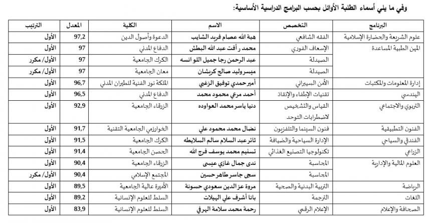وتاليا اسماء الطلبة الأوائل: