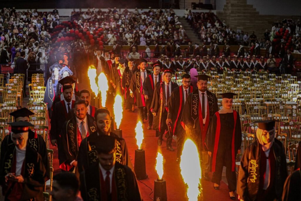 وأعرب عن اعتزاز الجامعة وفخرها بالخريجين الذين أثبتّوا التزامَهم وتفانيَهم وشغفَهم الذي لا يعرفُ الحدودَ، وواصلوا الليلَ بالنهار، وتحمّلوا الصعابَ، وبذلْوا غايةَ الجَهد، وأخلصوا السعيَ والكدَّ، حتى حصلوا على درجاتِهم العلميةِ والمهنية، التي تلبّي رغباتِهم وتطلعاتهم بغد مشرق لهم ولمهنهتم ولوطنهم.