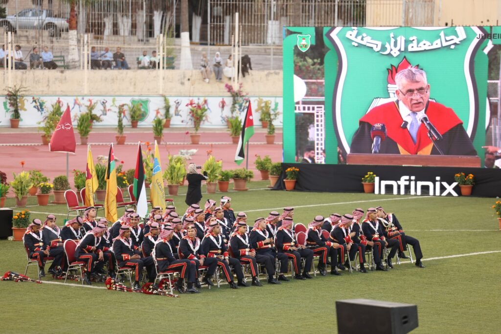 وأكمل قائلًا “رغم الألم الذي يتعرض له أهلنا في غزة وفلسطين، يتجدّد الأمل في هؤلاء الخريجين، وتبقى مواكبهم تحمل مشاعل العلم والمعرفة، فغدًا، وبإشراقِ يوم جديد، يُسطّر خريجو الأردنية أروع قصص النجاح”.