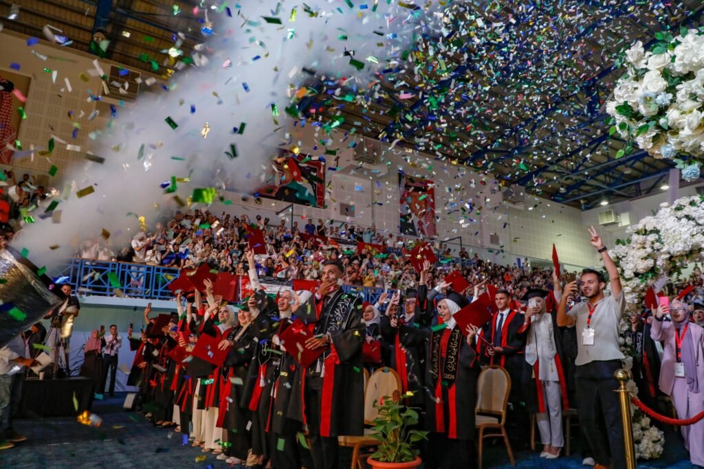 وتستمر احتفالات الجامعة بتخريج فوج اليوبيل الفضي على مدار خمسة أيام في الصالة الرياضية الرئيسية في مدينة الأمير محمد للشباب بمدينة الزرقاء، اعتبارًا من اليوم الأحد وحتى الخميس 8/8/2024 بواقع (12) حفلة لتخريج ما يقارب من (6) آلاف طالباً وطالبة في مختلف التخصصات والدرجات العلمية.
