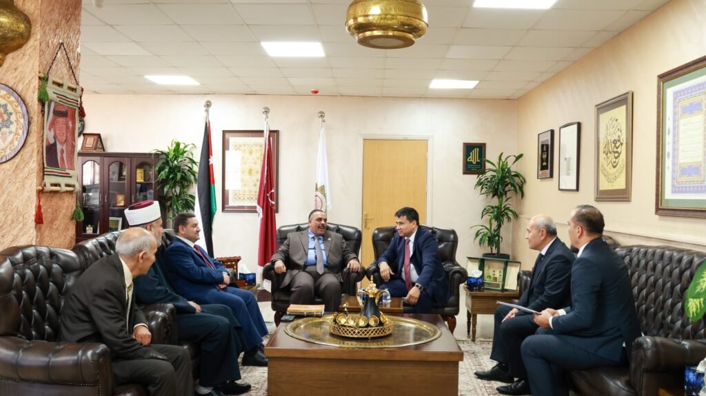 وخلال اللقاء، ثمن الدكتور الفناطسة هذه الزيارة الكريمة، وقدّم شرحا موجزاً عن الجامعة تضمن رسالة الجامعة ورؤيتها وأهدافها، وما تنفرد به من تخصصات في مختلف البرامج الدراسية، من ضمنها برنامج التدريس عن بعد لمرحلة البكالوريوس للطلبة الأجانب في تخصصات المذاهب الفقهية: الحنفي والشافعي والمالكي، وتخصص اللغة العربية.