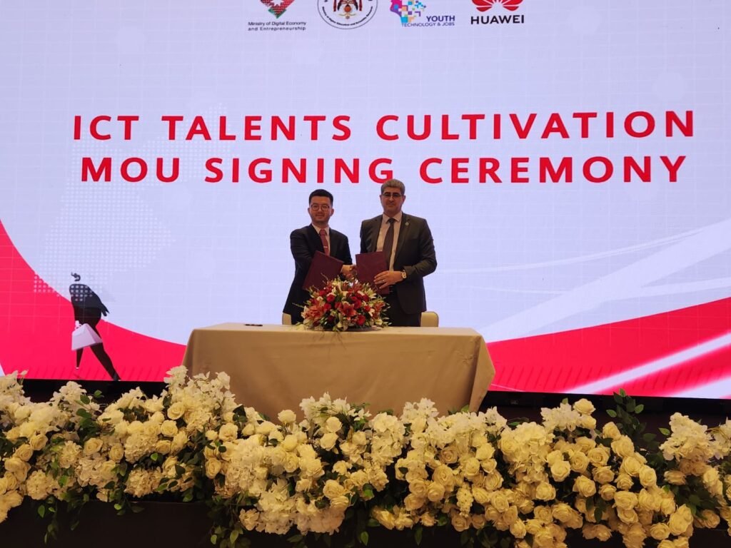 ووقع عن الجامعة نائب رئيس الجامعة للشؤون الإدارية الأستاذ الدكتور نضال عيشة تحت رعاية وزارتي الاقتصاد الرقمي والريادة والتعليم العالي والبحث العلمي لحفل توقيع هواوي مع 12 جامعة أردنية وعن الشركة مديرها العام آدم تشانغ بحضور عميد كلية تكنولوجيا المعلومات بجامعة الزرقاء الأستاذ الدكتور محمد حسان.