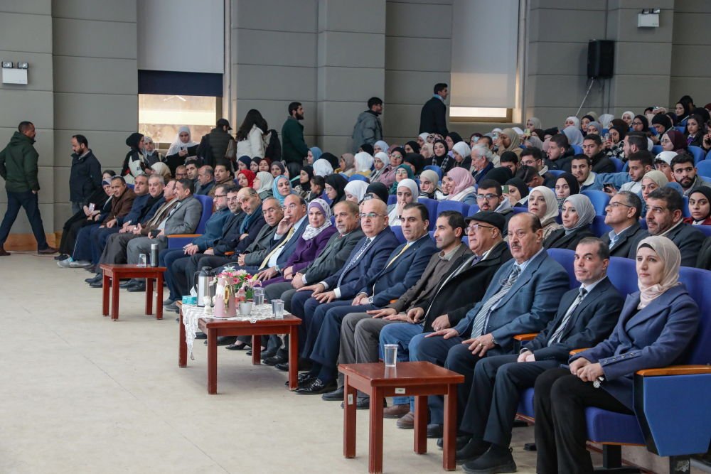 احتفاءً بمناسبة اليوم العالمي للغة العربية، رعى رئيس الجامعة، الأستاذ الدكتور خالد الحياري الاحتفال الذي نظمته كلية الآداب بعنوان “اللغة العربية هوية أمة وعنوان مجد”، بحضور نائب رئيس الجامعة الأستاذ الدكتور وصفي الروابدة، وعميد الكلية الأستاذ الدكتور يحيى العلي، وعدد من عمداء الكليات، وأعضاء الهيئتين التدريسية والإدارية وطلبة الكلية.