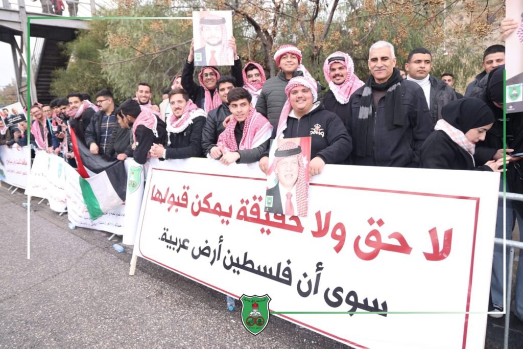 وتوجّه وفدٌ من الجامعة الأردنيّة، يضمُّ أعضاءَ الهيئتين التدريسيّة والإداريّة والطلبة، إلى مطار ماركا الدوليّ، ليكونوا في طليعة مستقبلي جلالة الملك عبد الله الثاني وسمو ولي العهد الأمير الحسين بن عبد الله، وذلك تعبيرًا عن الفخر والاعتزاز بالمواقف الوطنيّة المشرفة لجلالة الملك، الرافضة لمخطّطات التهجير والمدافعة عن مصالح الوطن.