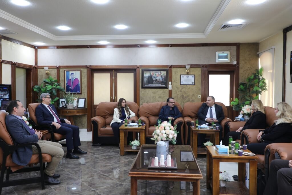 وشهدت الزيارة جولة في مرافق الجامعة، شملت كلية طب الأسنان، حيث التقى الوفد بعميد الكلية الأستاذ الدكتور نسرين السالم، واستمع إلى شرحٍ مفصل من أعضاء هيئة التدريس حول البرامج الأكاديمية، والمختبرات التعليمية، والعيادات التدريبية، وأبرز الإنجازات البحثية للكلية.