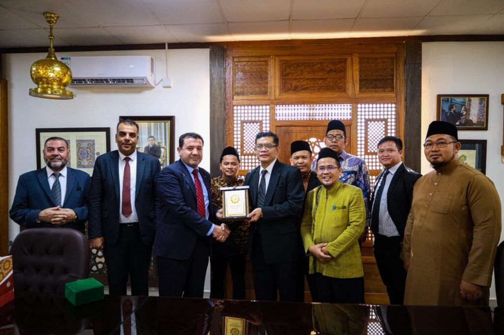 مندوبًا عن رئيس جامعة العلوم الإسلامية العالمية، استقبل نائب رئيس الجامعة الأستاذ الدكتور موفق مقدادي الملحق الثقافي الاندونيسي السيد عالم شاة ومساعد الملحق السيد محمد منير والوفد المرافق له. في بداية اللقاء، رحب الدكتور مقدادي بالوفد الضيف وقدم لمحة موجزة عن الجامعة وكلياتها والتخصصات التي تُدَّرس فيها وبرنامج التعليم عن بعد لكليات المذاهب الفقهية للطلبة غير الأردنيين، مؤكدًا حرص الجامعة على تعزيز التعاون مع كافة الملحقيات الثقافية في مختلف المجالات العلمية والأكاديمية لرفد العالمين العربي والإسلامي بخريجين على مستوى عالٍ من الكفاءة والمسؤولية قادرين على إبراز الصورة المشرقة للإسلام، مشيدًا بالوقت ذاته بالطلبة الأندونيسيين الدارسين في الجامعة. من جهته أبدى الوفد الضيف إعجابه بالمستوى المتقدم الذي وصلت إليه الجامعة، والسمعة الطيبة والمكانة المرموقة التي تتمتع بها عالميًا، مؤكدين رغبتهم بزيادة أعداد الطلبة الإندونيسيين الدارسين في الجامعة في مختلف العلوم الشرعية والإنسانية وتميزها على صعيد الجامعات العربية والإسلامية، مما جعلها محط أنظار الطلبة الأندونيسيين وذلك لما يتمتع به الأردن من مكانة خاصة ووسطية تنعكس إيجابًا على الطلبة الوافدين لأغراض التعليم. وفي ختام الزيارة التي حضرها مساعد الرئيس الدكتور غالب الحوراني ونائب عميد كلية الدعوة وأصول الدين الدكتور زكي البشايرة وعميد شؤون الطلبة الدكتور محمد السعود، تبادل الطرفان الدروع التقديرية.