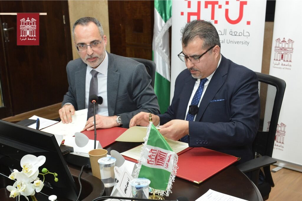وقّعت جامعة البترا مذكرة تفاهم مع جامعة الحسين التقنية، تهدف إلى وضع إطار مؤسسي للشراكة في مجالات التعليم التقني والبحث العلمي، ومواءمة مخرجات التعليم مع متطلبات سوق العمل.